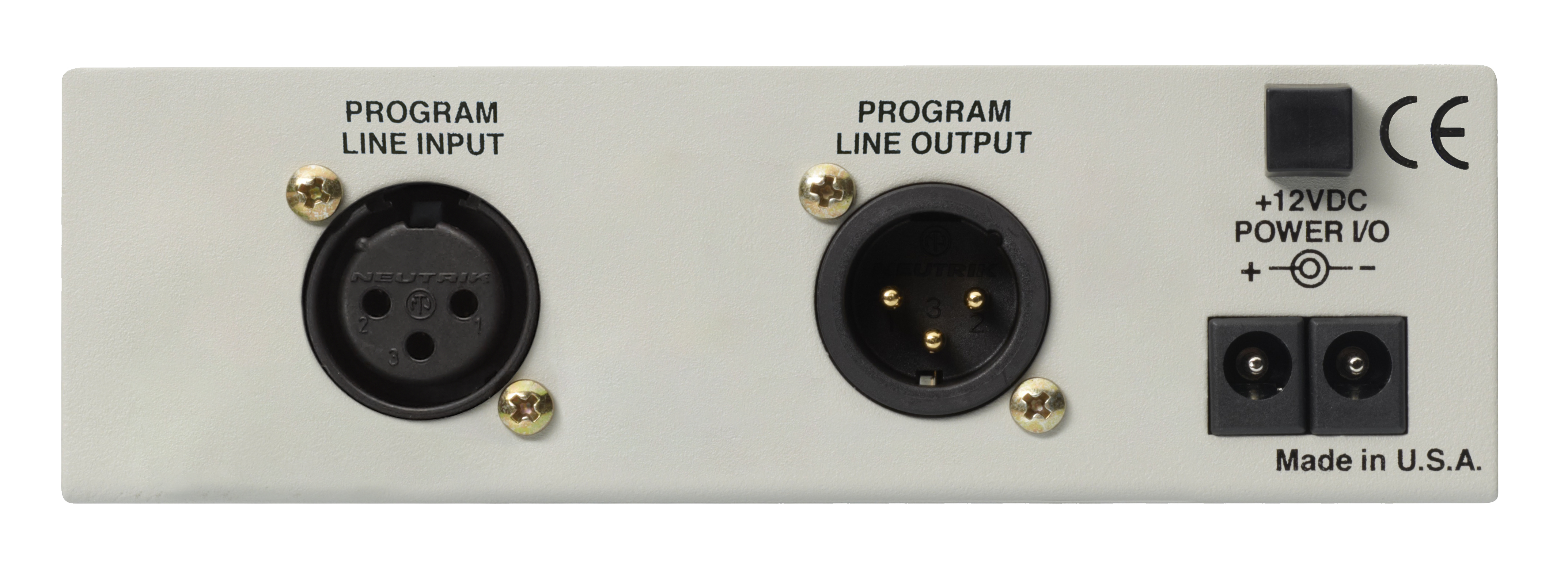 Active-balanced (XLR) delivers output levels between –15dBu and +12dBu corresponding to 100% modulation; 200-ohm resistive source. A switch under the top cover inserts a 20dB pad in the output for transmitters requiring a low level input.